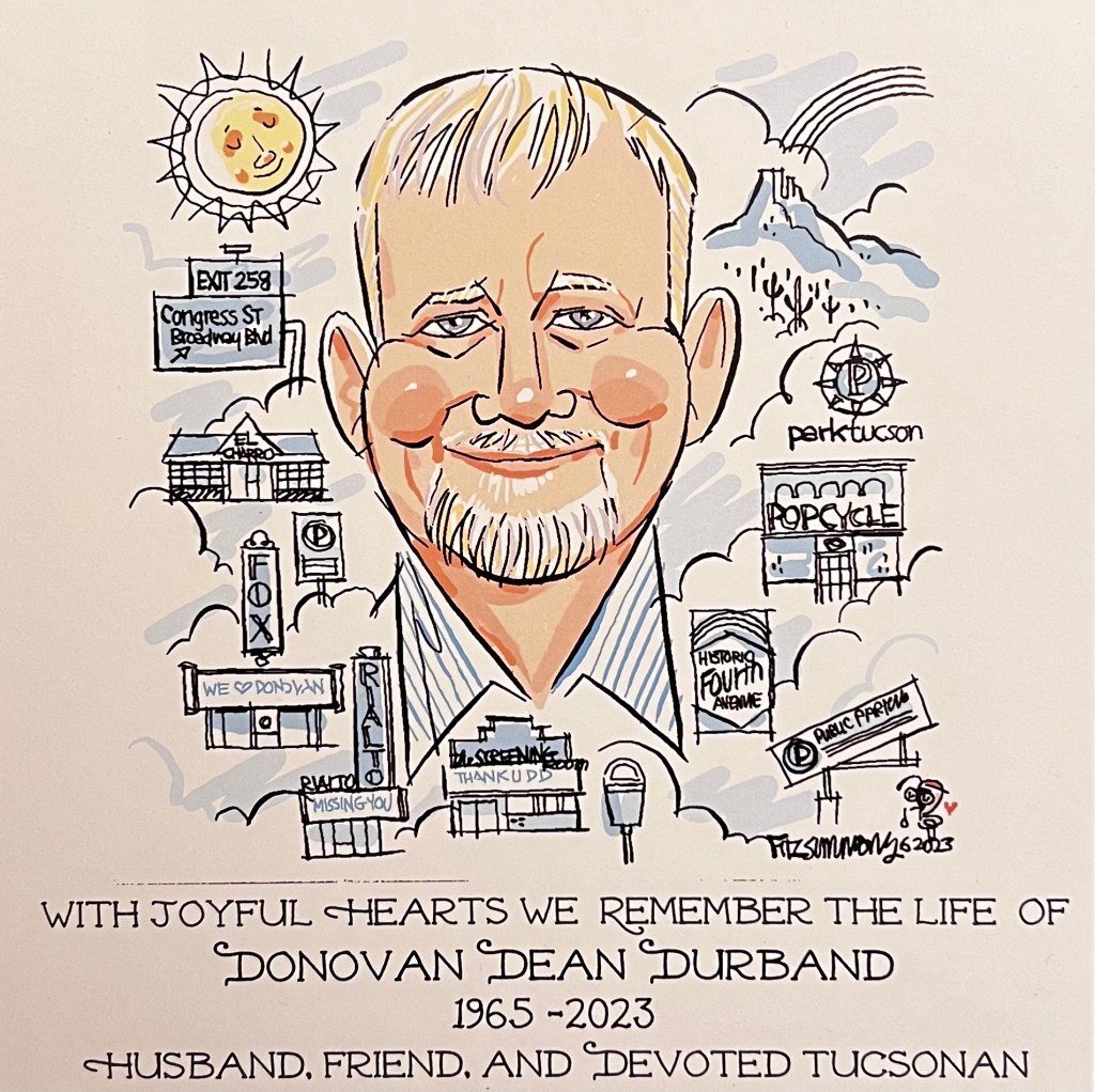 “I met Donovan over 23 years ago when he and I helped start up the Tucson Downtown Alliance. His leadership during these early years was invaluable to the success downtown Tucson is today. His encyclopedia knowledge of Tucson’s downtown history was amazing. He went out of his way countless times to help anyone who needed his expertise and guidance. He did so without need for recognition. He did so because he was a good person with a good soul. Over the last 20 years, there are many behind the scenes heroes, who have help turn Downtown Tucson around. Don was one of those heroes, one of the best! I am proud to have known him and call him my friend.”