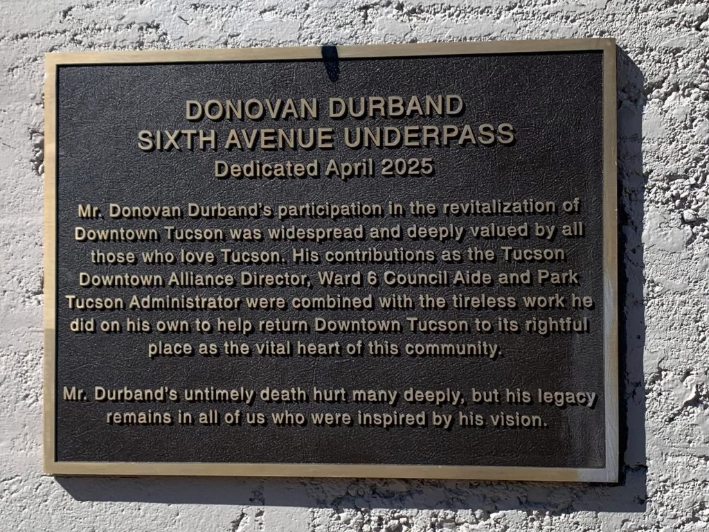 Additionally, as the following photographs depict, tributes to Donovan for his vision and for his dedication to Tucson’s revitalization have been placed on each of the walls lining the underpass.